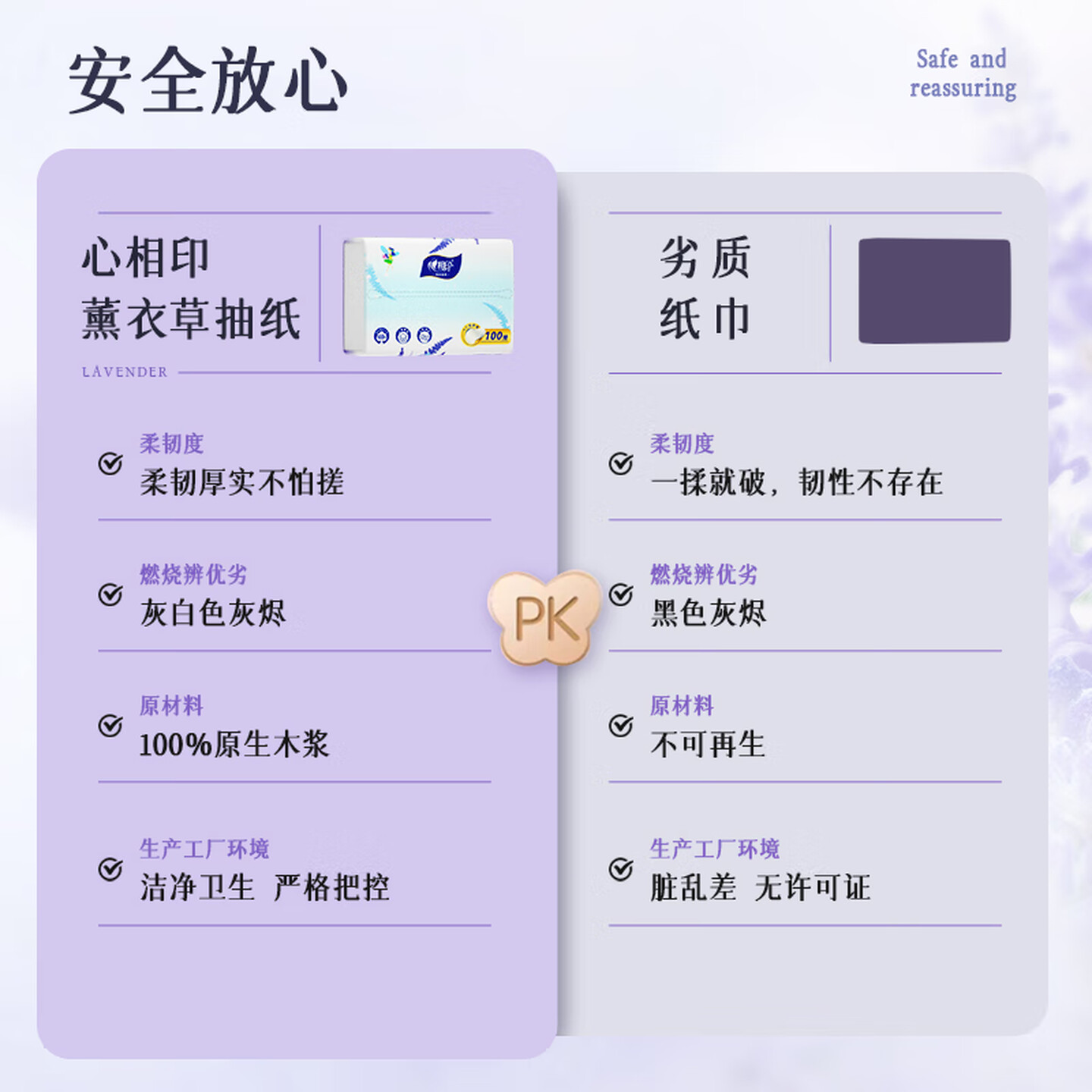 心相印抽纸纸巾薰衣草系列面巾纸3层 100抽*21包卷纸 |