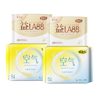 自由点卫生巾日夜组合装空气黄280mm12片 |