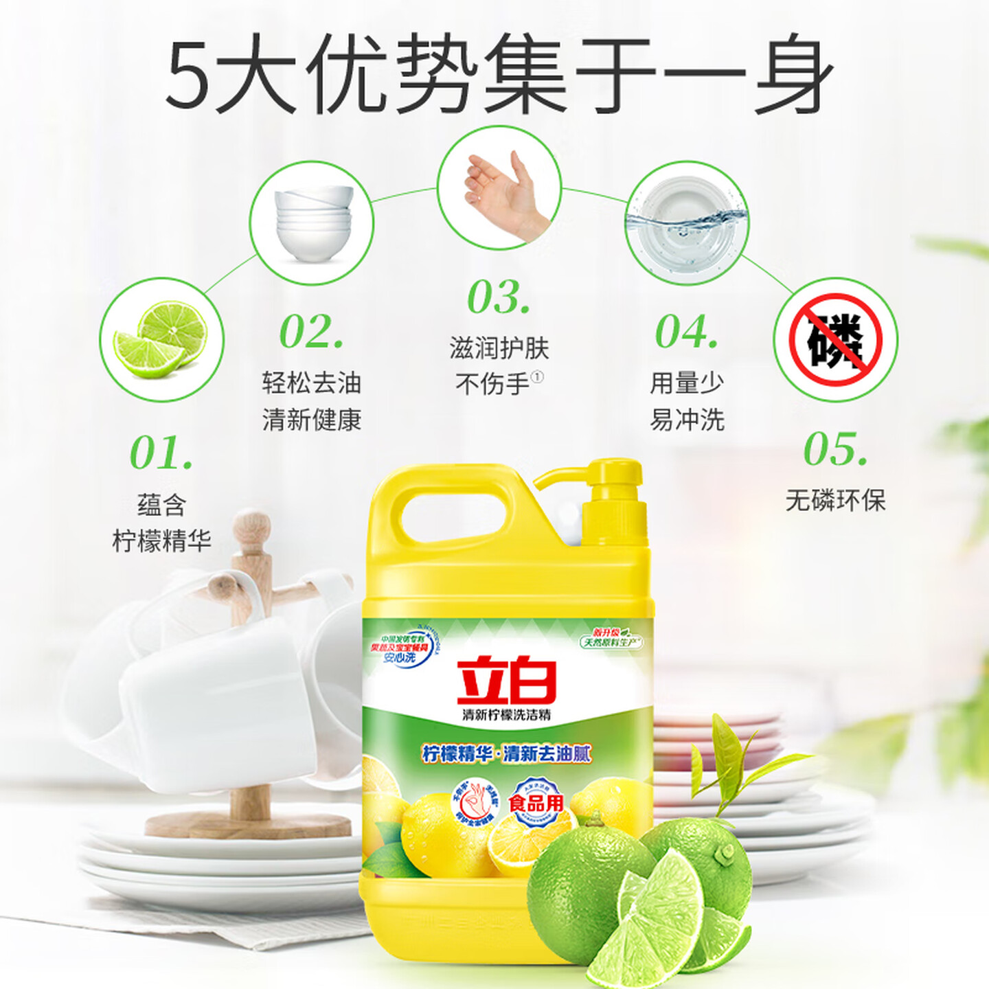立白清新柠檬洗洁精大桶1.5kg |