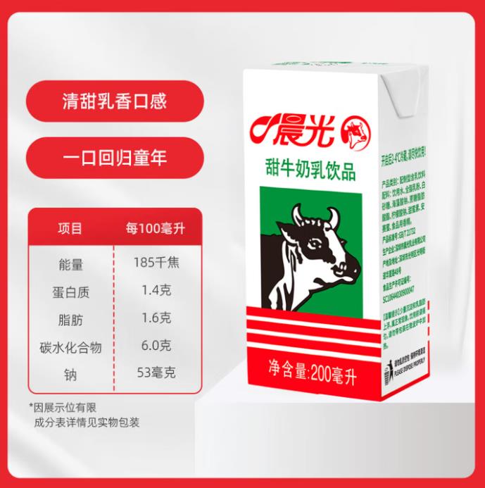 晨光甜牛奶乳饮品200ml*24盒 |