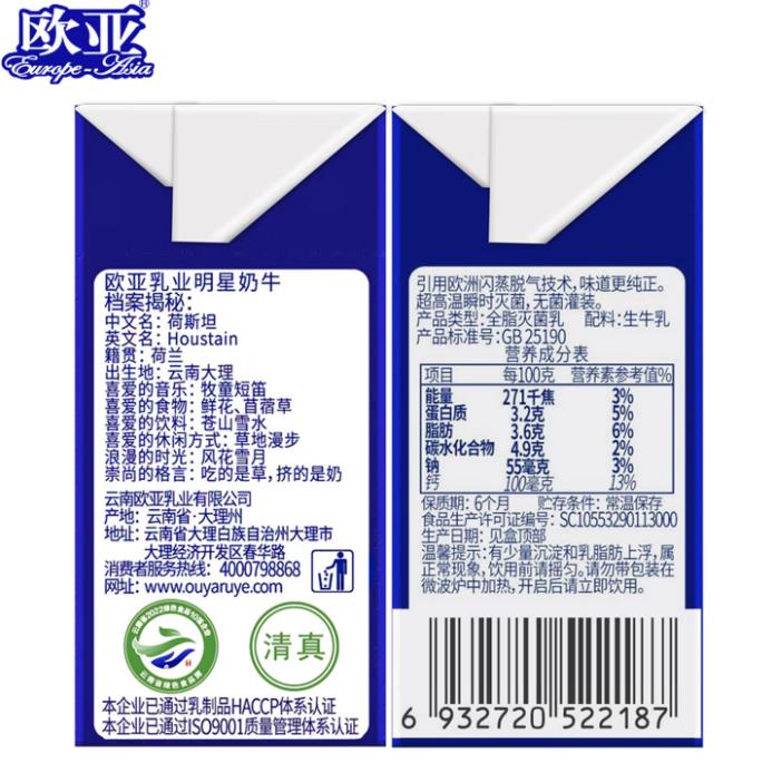 欧亚纯牛奶 200g*20盒 |