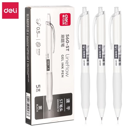 得力按动黑色0.5mm中性笔5支+10芯 |