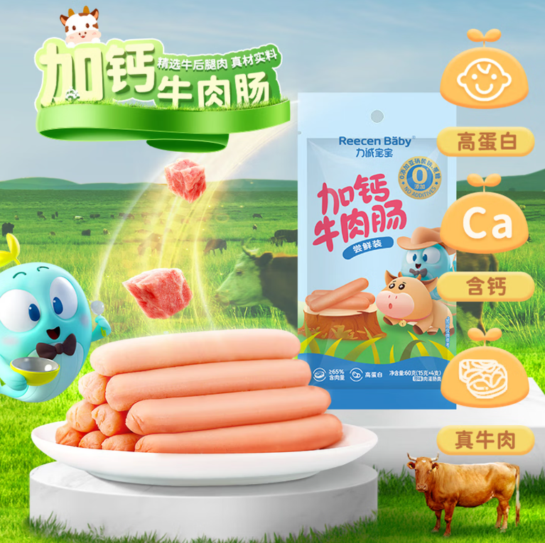 力诚宝宝 加钙牛肉风味肠原味 儿童肠宝宝零食火腿肠 60g尝鲜装(4支装) |