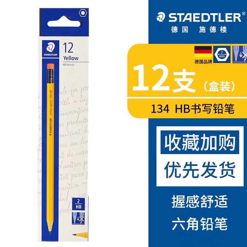 施德楼六角杆HB铅笔(带橡皮头)12支 |