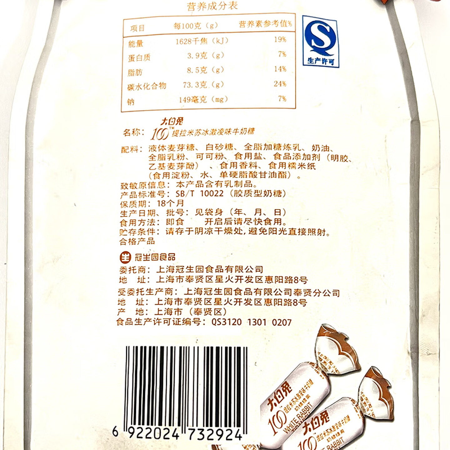 大白兔 提拉米苏冰淇淋奶糖107g约15颗 |