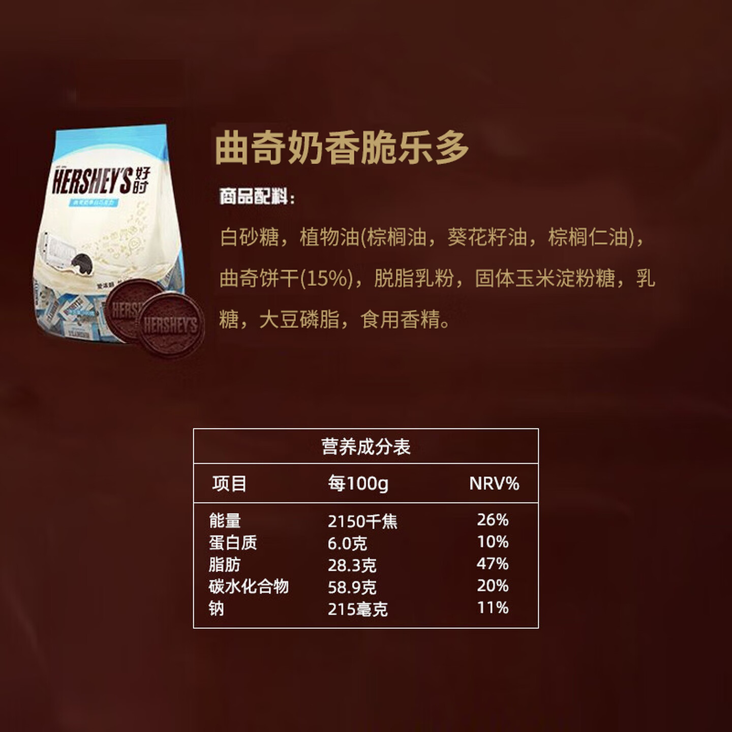 好时(Hershey’s) 曲奇奶香脆乐多巧克力500g |