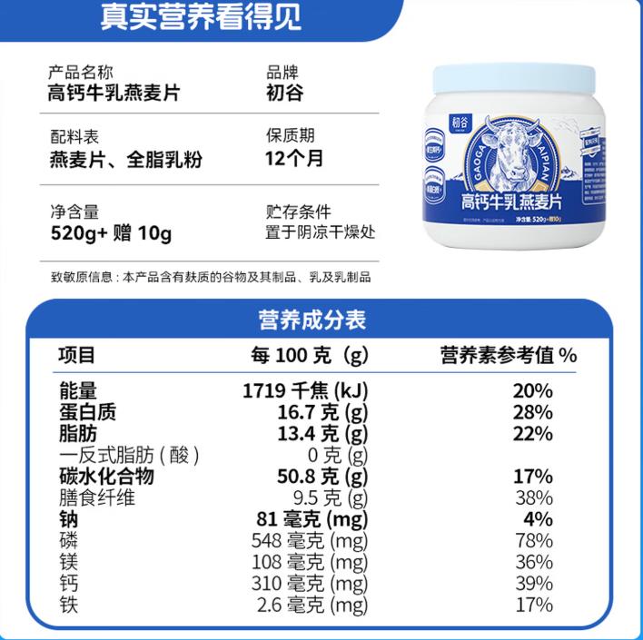 初谷高钙牛乳燕麦片530g |