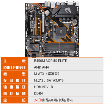 技嘉(GIGABYTE)B450M AORUS ELITE “新小雕”电竞主板 支持3600/3600X/3700X(AMD B450/Socket AM4) |